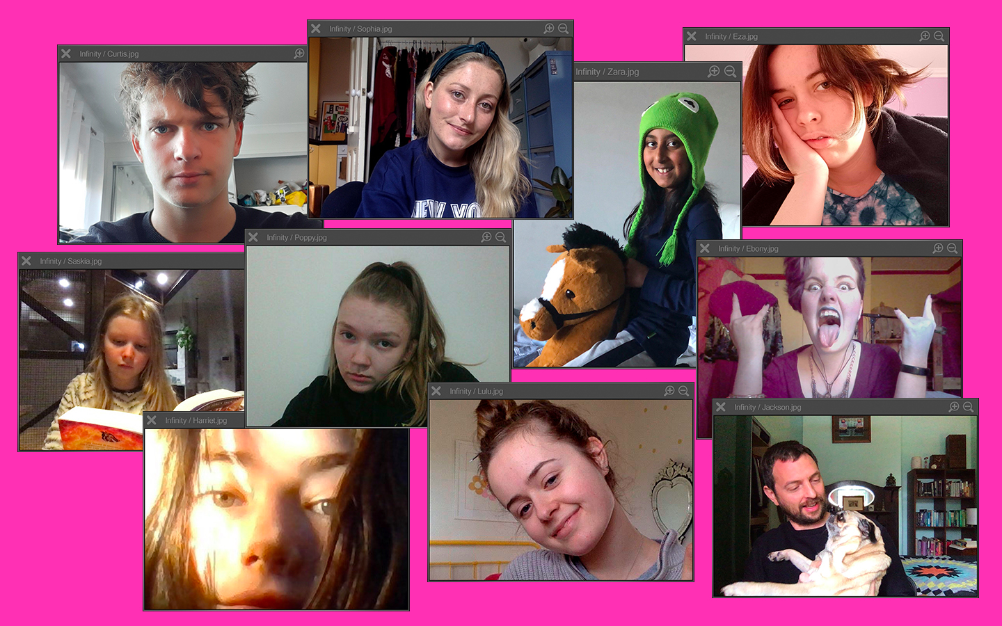 Anything & Everything sees infinity explore exactly that – anything and everything. From intimacy to goldfish to TV shows with protagonists who end up ‘finding themselves.’ From their rooms via the internet, infinity artists have repurposed video conferencing software to create a smashed-up livestreaming event where awkward dance sequences, tacky video effects and video grabs collide with brazen discussion about life from young people’s perspective.