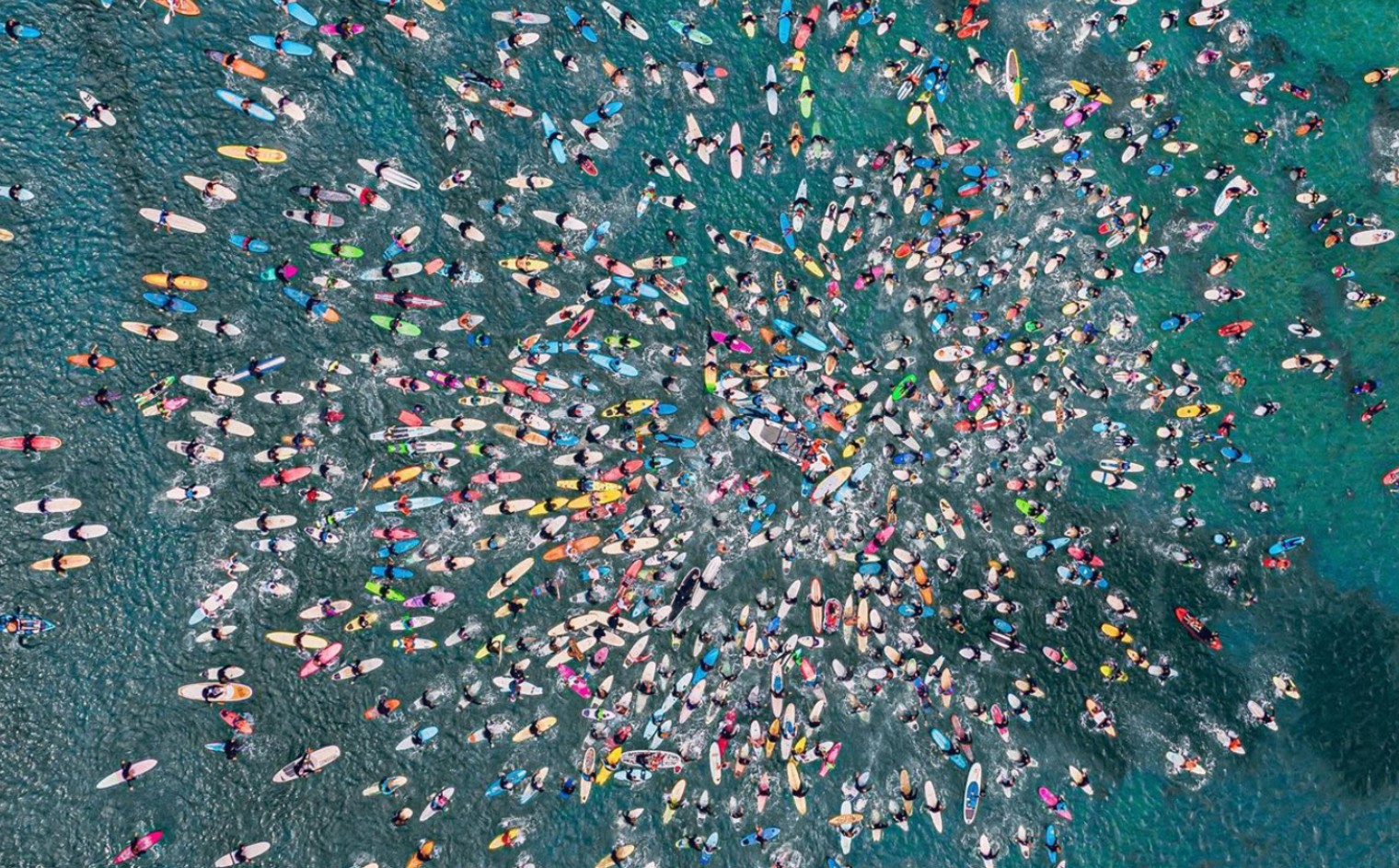 “The image was shot on November 23rd, 2019 at Torquay Front Beach. The scene is a paddle out demonstration that united communities around Australia to protect the incredible Australian southern coastline from oil drilling in the Great Australian Bight,” the description reads.