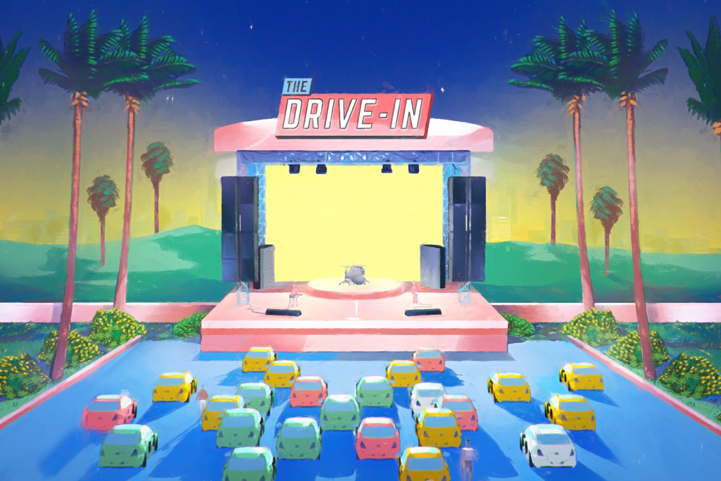 With capacity for 250 cars, the interactive entertainment will be broadcast from the stage straight to the cars, bringing people together while still keeping that safe distance apart.