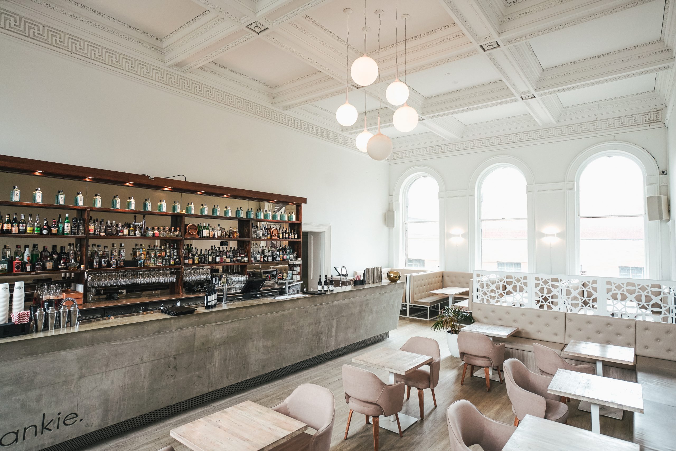 For years now, this elegant restaurant has been all about sleek lines and a trendy vibe. With wooden floors, intricate high ceilings, large windows, all polished leather, beige leather couches, and soft rose-gold accents, matched with comfy plush chairs, a neutral bar, and stunning art, Frankie. boasts an ambient setting for lingering over Saturday night drinks or romantic evening dining.