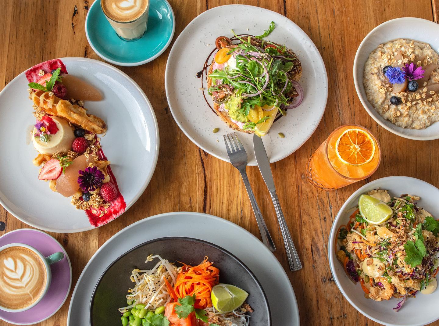 Kyosk Café is in Ocean Grove and is dedicated to serving up delicious food and coffee from 7am-4pm every day. Dine in for a hearty brunch or grab a coffee to go from the walk-up coffee window. Kyosk serves up several healthy, fresh brunch options including an Asian style brekkie bowl, okonomiyaki and black rice porridge for the cooler months. You can also grab something off their extensive lunch menu from 12 featuring middle eastern nourish bowls, marinated tofu bao buns or a grilled chicken banh mi. Kyosk also offers a whole heap of vego and vegan options to ensure no one misses out on a cheeky brunch sesh.