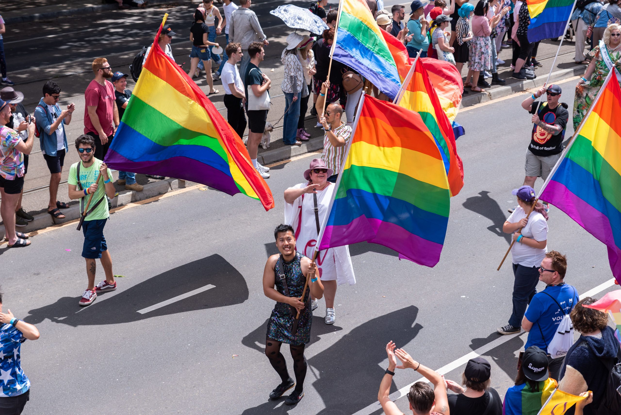 Filtering through Fitzroy Street, the annual event commences with Dykes on Bikes preceding the marching contingent as per tradition, with the march itself led by Boon Wurrung Elders and a Rainbow Aboriginal Float along with the Premier of Victoria, Minister for Equality and the Creative Industries and Commissioner for Gender and Sexuality.