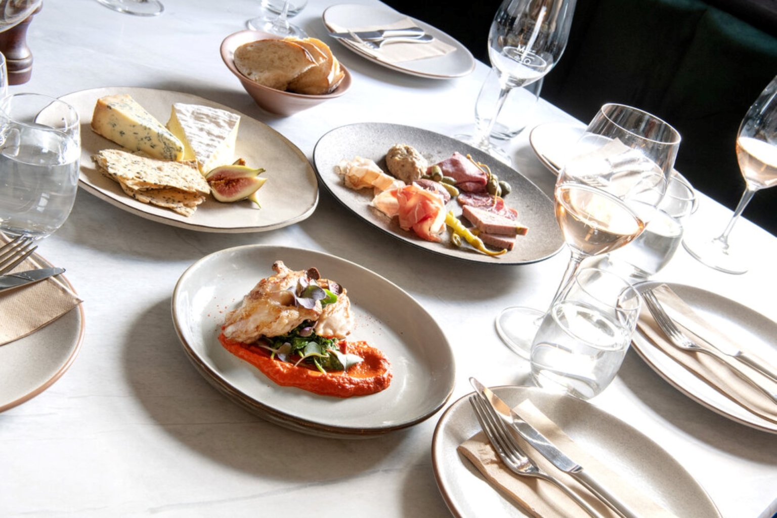 The seasonal dessert menu currently boasts four options including Persian pistachio cake, poached rhubarb and raspberry pavlova, Mille feuille and a cheese selection, all dressed with in-season produce.