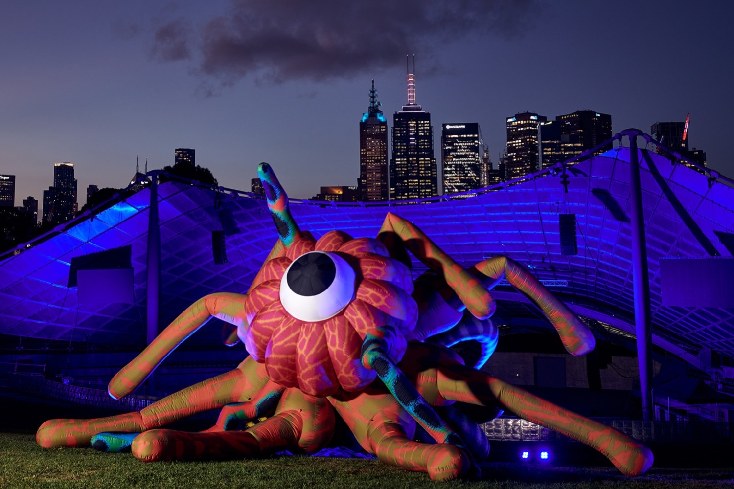 Visitors are invited to stroll through the glowing biosphere created by New York City-based Australian technologist artists Tin & Ed, whose practice blends nature and technology through playful, technicolour inflatable sculptures. Additionally, Filipino contemporary fine artist Leeroy New has created sprawling structures from the recycled bamboo bones of The Wilds 2021, which tangle together the notion of organic and inorganic construction. Fully immersing the visitor in the creatively playful wilderness that is The Wilds, sound artists Mark Mitchell and Pascal Barbare have crafted physics-based algorithms that condense natural movement to create a hauntingly beautiful audio work.