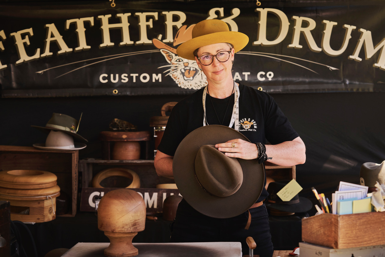 Among the standout artists is Cat Leahy, a hat maker and musician whose work perfectly embodies the spirit of the Lost Trades Fair. Leahy, a drummer for the band This Way North, designs custom hats for musicians worldwide under her business Feather and Drum. Based in the Yackandandah in the King Valley region of Victoria, her workshop space is a creative haven where music and craft come together. Leahy’s story of blending artistic passions is a testament to the boundless creativity that the Lost Trades Fair celebrates.