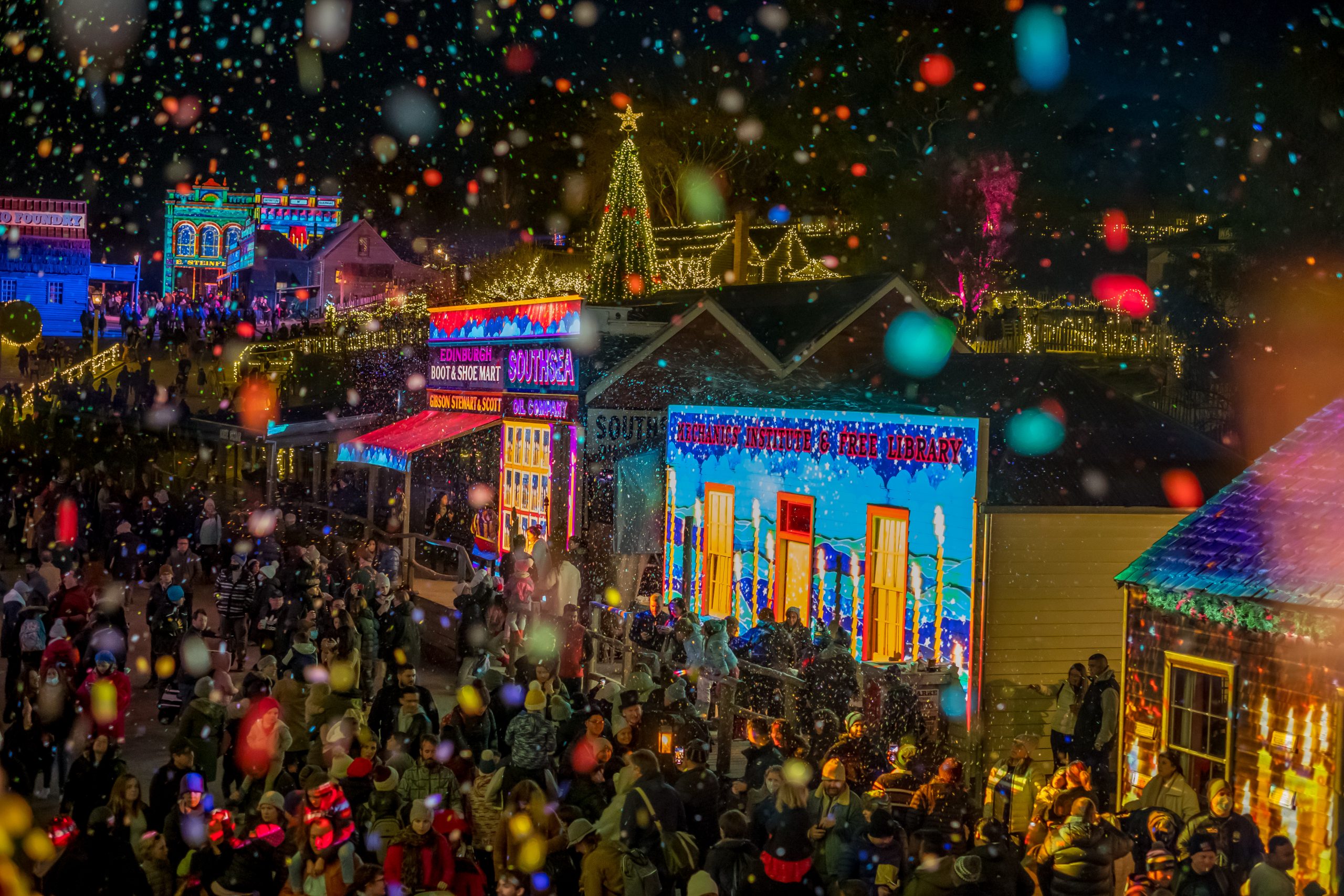 Winter Wonderlights has become an annual tradition, transforming Sovereign Hill into a mesmerising winter wonderland. The event kicks off during the day, treating visitors to charming scenes of ‘snow’ falling in the streets, theatre performances, festive food, and a variety of activities for all ages. But as the sun sets, the magic truly begins.