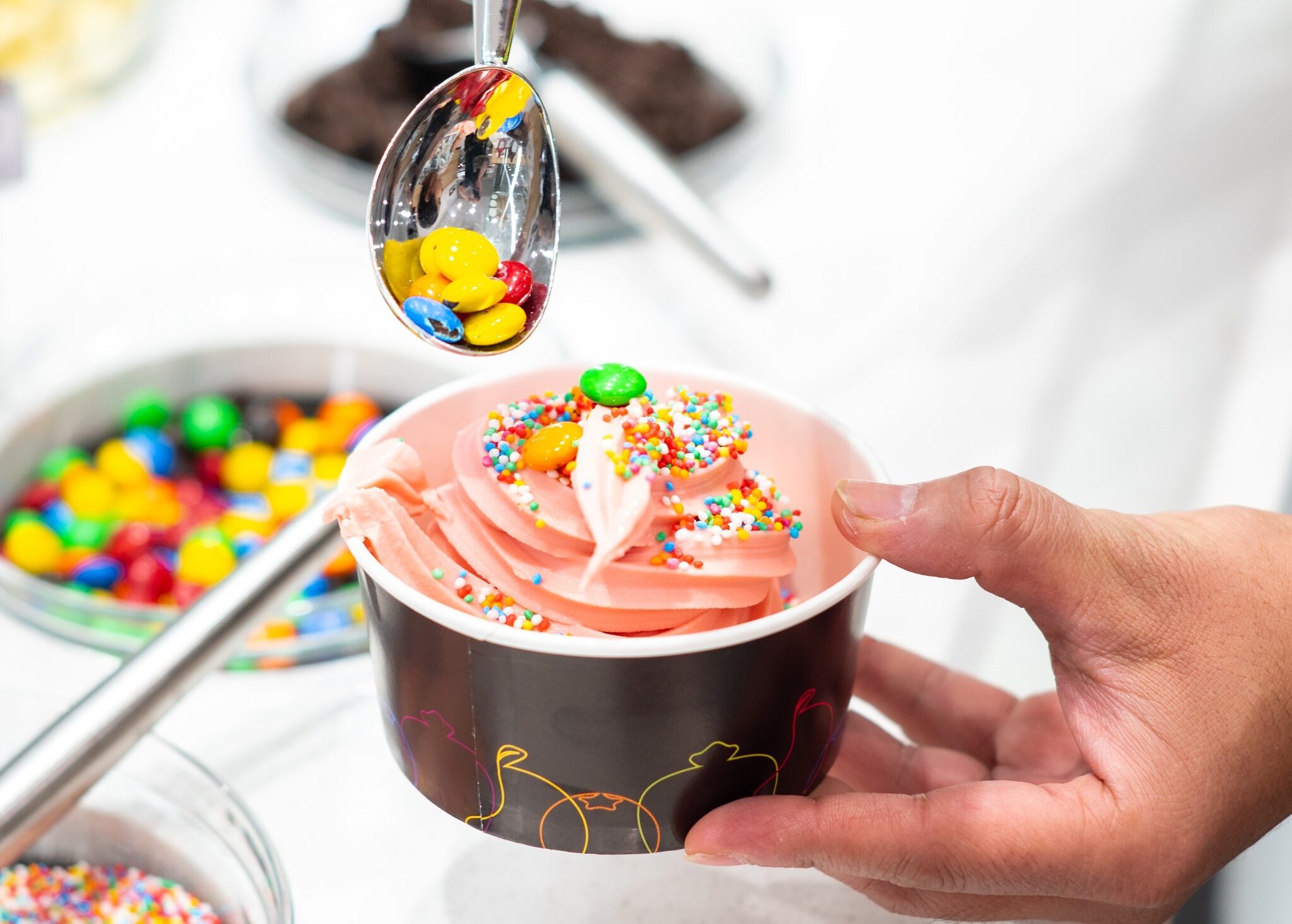 The self-serve concept at Tutti Frutti allows customers to create their own frozen yogurt masterpieces. With a plethora of toppings ranging from fresh fruits and crunchy nuts to colourful sprinkles and decadent sauces, the possibilities are endless. Whether you prefer a simple and refreshing combination or a bold and extravagant creation, Tutti Frutti offers a playground for your taste buds. Simply pick your cup, pick your yoghurt, load it up with toppings and pay by weight.