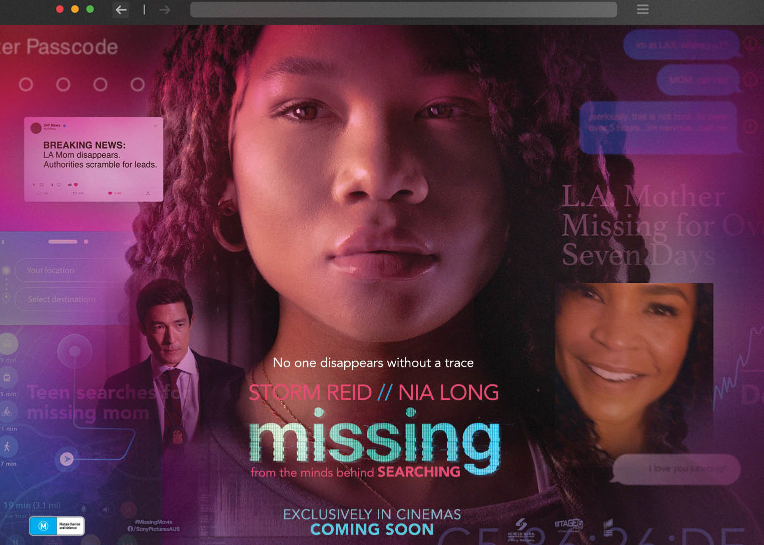 When her mother (Nia Long) disappears while on vacation in Colombia with her new boyfriend, June’s (Storm Reid) search for answers is hindered by international red tape. Stuck thousands of miles away in Los Angeles, June creatively uses all the latest technology at her fingertips to try and find her before it’s too late.